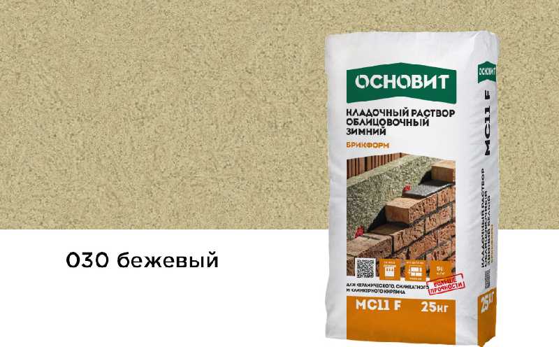 Кладочный раствор ОСНОВИТ БРИКФОРМ МС11 F зимний предназначен для кладки стен из облицовочного кирпича с водопоглощением до 12% с возможностью расшивки швов в момент укладки при температуре окружающей среды и основания от -10 до + 10°С.