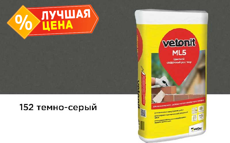 Цветной кладочный раствор weber.vetonit МЛ 5, темно-серый, №152 зимний, 25 кг