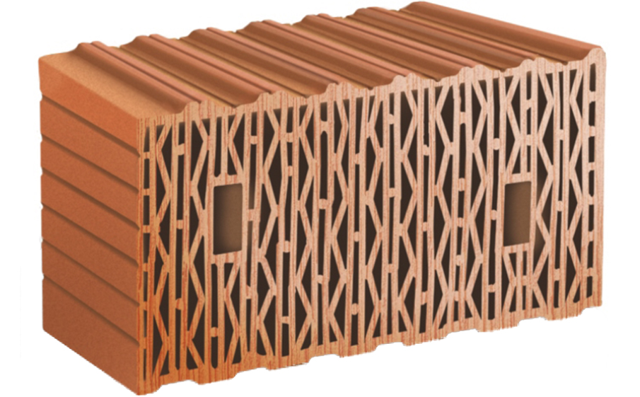 Блок керамический поризованный ЛСР (RAUF Therme) 12,35 НФ используется для строительства наружных стен. Обладает более высоким показателем по теплопроводностипо сравнению с альтернативными поризованными блоками. В качестве доборного элемента используется камень 10,7НФ. По сравнению с блоком 14,3НФ заметно снижает толщину стены и вес конструкции, сокращает расход кладочного раствора.